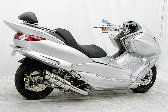 ■受注生産商品となっており、商品手配後 2週間程度入荷にお時間を頂きます。■浅倉商事が自信を持ってお届けする、極限まで価格を抑えた次世代の新定番マフラーです。オールステンレス製でエキパイからサイレンサーまでバフ仕上げを施しています。ビッグスクーターにマッチするよう極太のエキパイ60mm径、サイレンサー110mm径の仕様で、非常にバランスのとれた仕上がりなっています。性能面は、低中速を落とすことなく高回転でスムーズに回り扱いやすい設定になっています。サイレンサーは、ストレート構造ではなくフロント部にパンチングを施した作りになっていますので音量は、静かめに押さえられ近所迷惑になる事無く安心して走行できます。音質も耳障りな音でなくバッフル装着時は静かめの低音、バッフル非装着時は心地よい最高の重低音を実現しております。O2センサー取り付け口対応マフラーですのでノーマルと同じ様にO2センサー固定できます。無加工ボルトオンにて装着できますので、必要な工具があれば簡単に取り付けできます。(取り付けに必要なボルト類は全て付属しております。)振動防止のためサイレンサーとエキパイが2分割になる安心設計になっており、耐久性が抜群に高い構造を採用しています。サイレンサーの固定にはサイレンサーバンドを採用し、バフ仕上げを施したステンレス製丸棒で組んだステーを介して固定しておりますので、従来のステーの固定より車体と調和した高級感あふれるマフラーです。ローダウンにも対応しておりますので、安心してご使用下さい。排気音量はバッフル装着時 約90db(法定規制値内音量)バッフル非装着時 約93db になります。