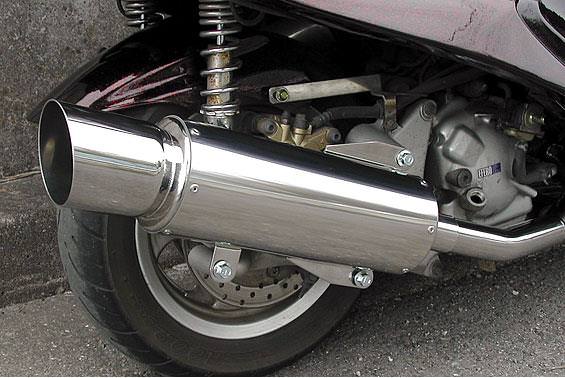 ■受注生産商品となっており、商品手配後 2週間程度入荷にお時間を頂きます。■オールステンレス製で、エキパイからサイレンサーまでバフ仕上げを施しています。ビッグスクーターにマッチするようエキパイ径45mm、サイレンサー径120mmの仕様で、装着時の全体的なバランスがとれた仕上がりとなっています。低中速を落とすことなく高回転でスムーズに回り扱いやすい設定になっています。振動防止のためサイレンサーとエキパイが2分割となる安心設計になっています。サイレンサーは、3点止めになっていますのでしっかりと固定でき、耐久性にも優れています。無加工ボルトオンにて装着できますので、必要な工具があれば簡単に取り付けできます。(取り付けに必要なボルト類は全て付属しております。)サイレンサーはストレート構造ではなくフロント部にパンチングを施した作りになっていますので、音量は静かめに抑えられており近所迷惑になる事無く安心して走行できます。ローダウンにも対応しておりますので、安心してご使用下さい。バッフル装着時 約87db(法定規制値内音量)バッフル非装着時 約90dbになります。