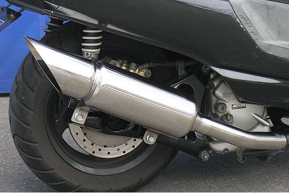 ■受注生産商品となっており、商品手配後 2週間程度入荷にお時間を頂きます。■オールステンレス製で、エキパイからサイレンサーまでバフ仕上げを施しています。ビッグスクーターにマッチするようエキパイ径60mm、サイレンサー径125mmの仕様で、装着時の全体的なバランスがとれた仕上がりとなっています。低中速を落とすことなく高回転でスムーズに回り扱いやすい設定になっています。振動防止のためサイレンサーとエキパイが2分割となる安心設計になっています。サイレンサーは、2点止めになっていますのでしっかりと固定でき、耐久性にも優れています。無加工ボルトオンにて装着できますので、必要な工具があれば簡単に取り付けできます。(取り付けに必要なボルト類は全て付属しております。)サイレンサーはストレート構造ではなくフロント部にパンチングを施した作りになっていますので、音量は静かめに抑えられており近所迷惑になる事無く安心して走行できます。バッフル装着時 約92db(法定規制値内音量)バッフル非装着時 約96dbになります。ローダウンにも対応しておりますので、安心してご使用下さい。