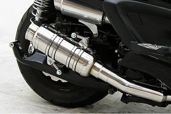 ■受注生産商品となっており、商品手配後 2週間程度入荷にお時間を頂きます。■※2008年式以降のエキパイにO2センサーが装備されているモデルに適合します。O2センサーがエキパイに装着できるようになっております。浅倉商事が自信を持ってお届けする、極限まで価格を抑えた次世代の新定番マフラーです。オールステンレス製でエキパイからサイレンサーまでバフ仕上げを施しています。ビッグスクーターにマッチするよう極太のエキパイ60mm径、サイレンサー110mm径の仕様で、非常にバランスのとれた仕上がりなっています。性能面は、低中速を落とすことなく高回転でスムーズに回り扱いやすい設定になっています。サイレンサーは、ストレート構造ではなくフロント部にパンチングを施した作りになっていますので音量は、静かめに押さえられ近所迷惑になる事無く安心して走行できます。音質も耳障りな音でなくバッフル装着時は静かめの低音、バッフル非装着時は心地よい最高の重低音を実現しております。無加工ボルトオンにて装着できますので、必要な工具があれば簡単に取り付けできます。(取り付けに必要なボルト類は全て付属しております。)振動防止のためサイレンサーとエキパイが2分割になる安心設計になっており、耐久性が抜群に高い構造を採用しています。サイレンサーの固定にはサイレンサーバンドを採用し、バフ仕上げを施したステンレス製丸棒で組んだステーを介して固定しておりますので、従来のステーの固定より車体と調和した高級感あふれるマフラーです。ローダウンにも対応しておりますので、安心してご使用下さい。