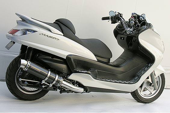 ■受注生産商品となっており、商品手配後 2週間程度入荷にお時間を頂きます。■※2008年式以降のエキパイにO2センサーが装備されているモデルに適合します。O2センサーがエキパイに装着できるようになっております。大柄なビッグスクーターの車体にマッチするよう、極太のエキパイ60mm径、サイレンサー110mm径という仕様で、バランスのとれた仕上がりなっています。ブラックカーボンタイプはステンレスサイレンサーにカーボンシートを巻いた仕様で、耐久性が抜群に高い構造を採用しています。排気口はステンレス削りだし部材を採用し無骨で迫力のある「BSタイプ」です。サイレンサーバンドにはスリットタイプを採用してデザインにもこだわっています。サイレンサーの固定にはサイレンサーバンドを採用し、バフ仕上げを施したステンレス製丸棒で組んだステーを介して固定しておりますので、従来のステーの固定より車体と調和した高級感あふれるマフラーです。オールステンレス製で、エキパイからサイレンサーまでバフ仕上げを施しています。低中速を落とすことなく高回転でスムーズに回り扱いやすい設定になっています。振動防止のためサイレンサーとエキパイが2分割となる安心設計になっています。サイレンサーは、3点止めになっていますのでしっかりと固定でき、耐久性にも優れています。無加工ボルトオンにて装着できますので、必要な工具があれば簡単に取り付けできます。(取り付けに必要なボルト類は全て付属しております。)サイレンサーはストレート構造ではなくフロント部にパンチングを施した作りになっていますので、音量は静かめに抑えられており近所迷惑になる事無く安心して走行できます。ローダウンにも対応しておりますので、安心してご使用下さい。