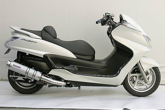 ■受注生産商品となっており、商品手配後 2週間程度入荷にお時間を頂きます。■大柄なビッグスクーターの車体にマッチするよう、極太のエキパイ60mm径、サイレンサー110mm径という仕様で、バランスのとれた仕上がりなっています。ホワイトカーボンタイプはステンレスサイレンサーにカーボンシートを巻いた仕様で、耐久性が抜群に高い構造を採用しています。排気口はステンレス削りだし部材を採用し無骨で迫力のある「BSタイプ」です。サイレンサーバンドにはスリットタイプを採用してデザインにもこだわっています。サイレンサーの固定にはサイレンサーバンドを採用し、バフ仕上げを施したステンレス製丸棒で組んだステーを介して固定しておりますので、従来のステーの固定より車体と調和した高級感あふれるマフラーです。オールステンレス製で、エキパイからサイレンサーまでバフ仕上げを施しています。低中速を落とすことなく高回転でスムーズに回り扱いやすい設定になっています。振動防止のためサイレンサーとエキパイが2分割となる安心設計になっています。サイレンサーは、3点止めになっていますのでしっかりと固定でき、耐久性にも優れています。無加工ボルトオンにて装着できますので、必要な工具があれば簡単に取り付けできます。(取り付けに必要なボルト類は全て付属しております。)サイレンサーはストレート構造ではなくフロント部にパンチングを施した作りになっていますので、音量は静かめに抑えられており近所迷惑になる事無く安心して走行できます。ローダウンにも対応しておりますので、安心してご使用下さい。
