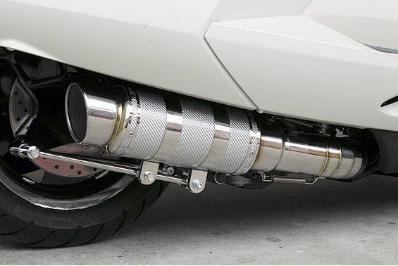 ■受注生産商品となっており、商品手配後 2週間程度入荷にお時間を頂きます。■ダイナミック&圧倒的パフォーマンス!ハイレベルな溶接技術が可能にした、高級感漂う独創的で革新的な究極マフラーです。エキパイ部は76.3mm径の極太パイプの輪切りピースを、絶妙な角度で溶接するワンオフ製法でエキパイを整形しておりますので、迫力のある溶接痕が独特のイメージを演出しております。サイレンサーの固定にはサイレンサーバンドを採用し、バフ仕上げを施したステンレス製丸棒で組んだステーを介して固定しておりますので、従来のステーの固定より車体と調和した高級感あふれるマフラーを完成させました。新設計のサイレンサーは115mm径のステンレスサイレンサーに、カーボンシートを巻いた仕様で、耐久性が抜群に高い構造を採用しています。サイレンサー内部は隔壁構造を採用し、カスタムマフラーにありがちなトルク不足を無くし、ゼロ発進から高速域までスムーズな走行が体感できます。無加工ボルトオンにて装着できますので、必要な工具があれば簡単に取り付けできます。(取り付けに必要なボルト類は全て付属しております。)音量は標準装備のバッフルを装着すれば、規制値内に納まるように静かめの音量に設定していますので、近所迷惑になる事無く安心して走行できます。バッフル装着時 約92db(法定規制値内音量)バッフル非装着時 約96dbになります。