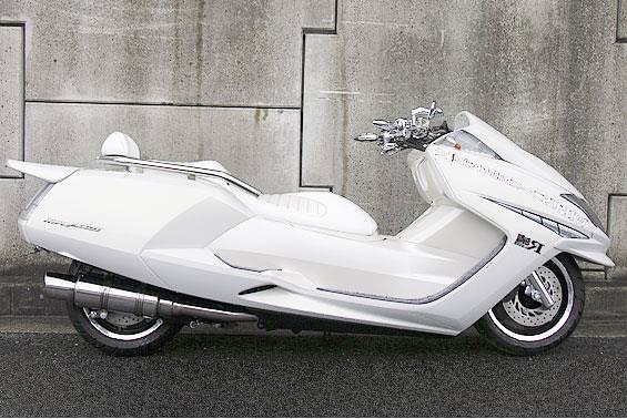 ■受注生産商品となっており、商品手配後 2週間程度入荷にお時間を頂きます。■サイレンサーは新設計構造を採用し軽量化を図っています。出口はインナーカールエンドタイプで、厚みのある上品な仕上がりになっています。サイレンサーバンドにはスリットタイプを採用してデザインにもこだわっており、従来のステーの固定からサイレンサーバンドで固定することにより、車体と調和したニュースタイルのマフラーを完成させました。オールステンレス製で、エキパイからサイレンサーまでバフ仕上げを施しています。ビッグスクーターにマッチするようエキパイ径60mm、サイレンサー径125mmの仕様で、装着時の全体的なバランスがとれた仕上がりとなっています。低中速を落とすことなく高回転でスムーズに回り扱いやすい設定になっています。振動防止のためサイレンサーとエキパイが2分割となる安心設計になっています。サイレンサーは、2点止めになっていますのでしっかりと固定でき、耐久性にも優れています。無加工ボルトオンにて装着できますので、必要な工具があれば簡単に取り付けできます。(取り付けに必要なボルト類は全て付属しております。)サイレンサーはストレート構造ではなくフロント部にパンチングを施した作りになっていますので、音量は静かめに抑えられており近所迷惑になる事無く安心して走行できます。ローダウンにも対応しておりますので、安心してご使用下さい。バッフル装着時 約92db(法定規制値内音量)バッフル非装着時 約96dbになります。