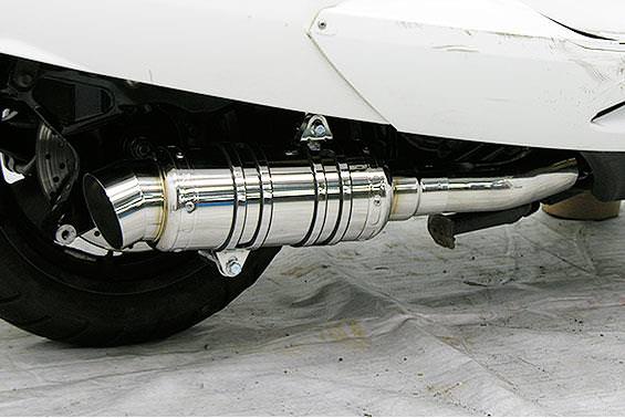 ■受注生産商品となっており、商品手配後 2週間程度入荷にお時間を頂きます。■浅倉商事が自信を持ってお届けする、極限まで価格を抑えた次世代の新定番マフラーです。オールステンレス製でエキパイからサイレンサーまでバフ仕上げを施しています。ビッグスクーターにマッチするよう極太のエキパイ60mm径、サイレンサー110mm径の仕様で、非常にバランスのとれた仕上がりなっています。性能面は、低中速を落とすことなく高回転でスムーズに回り扱いやすい設定になっています。サイレンサーは、ストレート構造ではなくフロント部にパンチングを施した作りになっていますので音量は、静かめに押さえられ近所迷惑になる事無く安心して走行できます。音質も耳障りな音でなくバッフル装着時は静かめの低音、バッフル非装着時は心地よい最高の重低音を実現しております。無加工ボルトオンにて装着できますので、必要な工具があれば簡単に取り付けできます。(取り付けに必要なボルト類は全て付属しております。)振動防止のためサイレンサーとエキパイが2分割になる安心設計になっており、耐久性が抜群に高い構造を採用しています。サイレンサーの固定にはサイレンサーバンドを採用し、バフ仕上げを施したステンレス製丸棒で組んだステーを介して固定しておりますので、従来のステーの固定より車体と調和した高級感あふれるマフラーです。ローダウンにも対応しておりますので、安心してご使用下さい。排気音量はバッフル装着時 約90db(法定規制値内音量)バッフル非装着時 約93db になります。