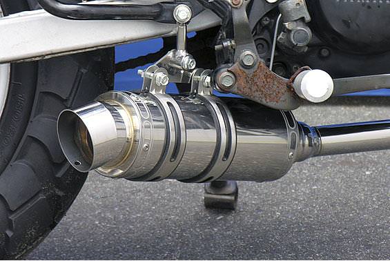 ※受注生産商品となりますのでご注文後2週間程度お時間をいただく商品となります。100mm径のサイレンサーを使用した、豪華で高級感のあふれる作りになっています。オールステンレス製でエキパイからサイレンサーまでバフ仕上げを施しています。サイレンサーの固定にはスリット入りサイレンサーバンドを採用し、バフ仕上げを施したステンレス製丸棒で組んだステーを介して固定しておりますので、従来のステーの固定より車体と調和した高級感あふれるマフラーを完成させました。サイレンサーはストレート構造ではなくフロント部にパンチングを施した作りになっていますので、音量は静かめに抑えられており近所迷惑になる事無く安心して走行できます。標準装備のバッフルを装着すれば、規制値内に納まるように静かめの音量に設定しております。バッフル装着時 約88db(法定規制値内音量)バッフル非装着時 約92db になります。無加工ボルトオンにて装着できますので、必要な工具があれば簡単に取り付けできます。(取り付けに必要なボルト類は全て付属しております。)