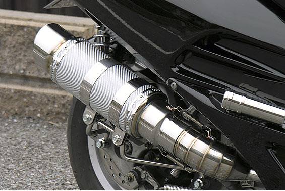 ■受注生産商品となっており、商品手配後 2週間程度入荷にお時間を頂きます。■ダイナミック&圧倒的パフォーマンス!ハイレベルな溶接技術が可能にした、高級感漂う独創的で革新的な究極マフラーです。エキパイ部は76.3mm径の極太パイプの輪切りピースを、絶妙な角度で溶接するワンオフ製法でエキパイを整形しておりますので、迫力のある溶接痕が独特のイメージを演出しております。サイレンサーの固定にはサイレンサーバンドを採用し、バフ仕上げを施したステンレス製丸棒で組んだステーを介して固定しておりますので、従来のステーの固定より車体と調和した高級感あふれるマフラーを完成させました。新設計のサイレンサーは115mm径のステンレスサイレンサーに、カーボンシートを巻いた仕様で、耐久性が抜群に高い構造を採用しています。サイレンサー内部は隔壁構造を採用し、カスタムマフラーにありがちなトルク不足を無くし、ゼロ発進から高速域までスムーズな走行が体感できます。無加工ボルトオンにて装着できますので、必要な工具があれば簡単に取り付けできます。(取り付けに必要なボルト類は全て付属しております。)音量は標準装備のバッフルを装着すれば、規制値内に納まるように静かめの音量に設定していますので、近所迷惑になる事無く安心して走行できます。バッフル装着時 約92db(法定規制値内音量)バッフル非装着時 約96dbになります。