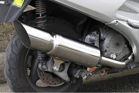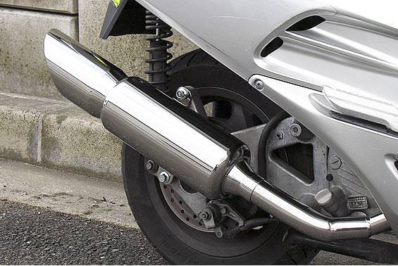 ■受注生産商品となっており、商品手配後 2週間程度入荷にお時間を頂きます。■オールステンレス製で、エキパイからサイレンサーまでバフ仕上げを施しています。ビッグスクーターにマッチするようエキパイ径45mm、サイレンサー径115mmの仕様で、装着時の全体的なバランスがとれた仕上がりとなっています。低中速を落とすことなく高回転でスムーズに回り扱いやすい設定になっています。振動防止のためサイレンサーとエキパイが2分割となる安心設計になっています。サイレンサーは、2点止めになっていますのでしっかりと固定でき、耐久性にも優れています。無加工ボルトオンにて装着できますので、必要な工具があれば簡単に取り付けできます。(取り付けに必要なボルト類は全て付属しております。)サイレンサーはストレート構造ではなくフロント部にパンチングを施した作りになっていますので、音量は静かめに抑えられており近所迷惑になる事無く安心して走行できます。ローダウンにも対応しておりますので、安心してご使用下さい。バッフル装着時 約92db(法定規制値内音量)バッフル非装着時 約96dbになります。