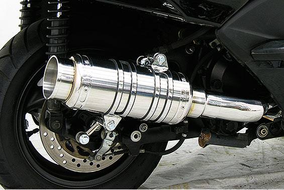 ■受注生産商品となっており、商品手配後 2週間程度入荷にお時間を頂きます。■浅倉商事が自信を持ってお届けする、極限まで価格を抑えた次世代の新定番マフラーです。オールステンレス製でエキパイからサイレンサーまでバフ仕上げを施しています。ビッグスクーターにマッチするよう極太のエキパイ60mm径、サイレンサー110mm径の仕様で、非常にバランスのとれた仕上がりなっています。性能面は、低中速を落とすことなく高回転でスムーズに回り扱いやすい設定になっています。サイレンサーは、ストレート構造ではなくフロント部にパンチングを施した作りになっていますので音量は、静かめに押さえられ近所迷惑になる事無く安心して走行できます。音質も耳障りな音でなくバッフル装着時は静かめの低音、バッフル非装着時は心地よい最高の重低音を実現しております。無加工ボルトオンにて装着できますので、必要な工具があれば簡単に取り付けできます。(取り付けに必要なボルト類は全て付属しております。)振動防止のためサイレンサーとエキパイが2分割になる安心設計になっており、耐久性が抜群に高い構造を採用しています。サイレンサーの固定にはサイレンサーバンドを採用し、バフ仕上げを施したステンレス製丸棒で組んだステーを介して固定しておりますので、従来のステーの固定より車体と調和した高級感あふれるマフラーです。ローダウンにも対応しておりますので、安心してご使用下さい。排気音量はバッフル装着時 約90db(法定規制値内音量)バッフル非装着時 約93db になります。
