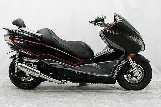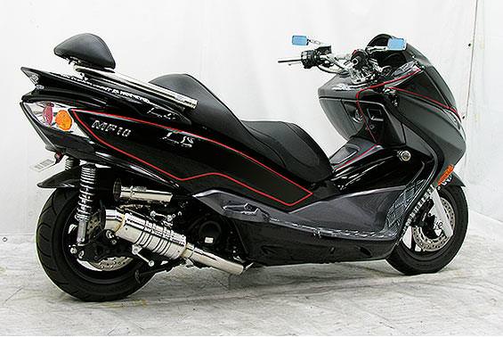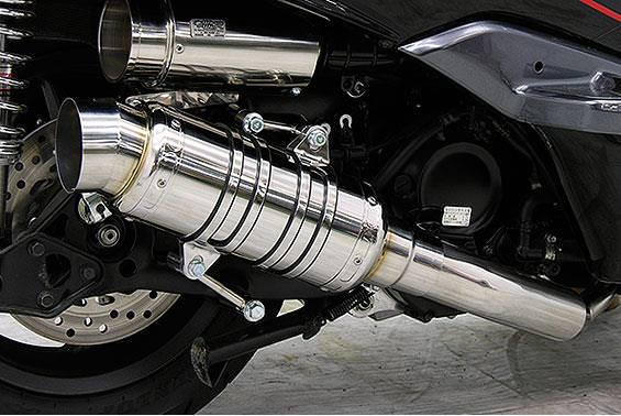 ■受注生産商品となっており、商品手配後 2週間程度入荷にお時間を頂きます。■浅倉商事が自信を持ってお届けする、極限まで価格を抑えた次世代の新定番マフラーです。オールステンレス製でエキパイからサイレンサーまでバフ仕上げを施しています。ビッグスクーターにマッチするよう極太のエキパイ60mm径、サイレンサー110mm径の仕様で、非常にバランスのとれた仕上がりなっています。性能面は、低中速を落とすことなく高回転でスムーズに回り扱いやすい設定になっています。サイレンサーは、ストレート構造ではなくフロント部にパンチングを施した作りになっていますので音量は、静かめに押さえられ近所迷惑になる事無く安心して走行できます。音質も耳障りな音でなくバッフル装着時は静かめの低音、バッフル非装着時は心地よい最高の重低音を実現しております。無加工ボルトオンにて装着できますので、必要な工具があれば簡単に取り付けできます。(取り付けに必要なボルト類は全て付属しております。)振動防止のためサイレンサーとエキパイが2分割になる安心設計になっており、耐久性が抜群に高い構造を採用しています。サイレンサーの固定にはサイレンサーバンドを採用し、バフ仕上げを施したステンレス製丸棒で組んだステーを介して固定しておりますので、従来のステーの固定より車体と調和した高級感あふれるマフラーです。ローダウンにも対応しておりますので、安心してご使用下さい。排気音量はバッフル装着時 約90db(法定規制値内音量)バッフル非装着時 約93db になります。
