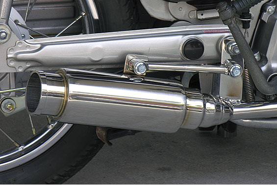 ■受注生産商品となっており、商品手配後 2週間程度入荷にお時間を頂きます。■※平成22年4月1日より施行された認証制度に適合する認証マフラーではありません。ご理解の程よろしくお願い致します。※キャブレター仕様車のみの適合。80mm径のサイレンサーを使用した、豪華で高級感のあふれる作りになっています。オールステンレス製でエキパイからサイレンサーまでバフ仕上げを施しています。サイレンサー固定ステーに12mm径のステンレス製ロッドステーを採用し、耐久性の高い安心設計でカスタム性もバッチリです。サイレンサーはストレート構造ではなくフロント部にパンチングを施した作りになっていますので、音量は静かめに抑えられており近所迷惑になる事無く安心して走行できます。標準装備のバッフルを装着すれば、規制値内に納まるように静かめの音量に設定しております。バッフル装着時 約84db(法定規制値内音量)バッフル非装着時 約88db になります。音質はバッフル装着時 約は静かめの低音、バッフル非装着時 約は心地よい重低音を実現しておりますので、ノーマルマフラーでは物足りない方にオススメです。