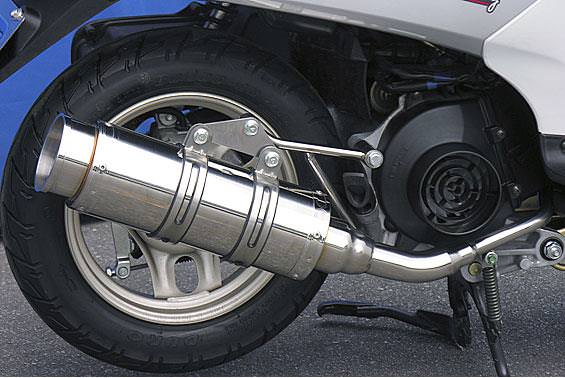 ■受注生産商品となっており、商品手配後 2週間程度入荷にお時間を頂きます。■100mm径のサイレンサーを使用した、豪華で高級感のあふれる作りになっています。オールステンレス製でエキパイからサイレンサーまでバフ仕上げを施しています。サイレンサーの固定にはスリット入りサイレンサーバンドを採用し、バフ仕上げを施したステンレス製丸棒で組んだステーを介して固定しておりますので、従来のステーの固定より車体と調和した高級感あふれるマフラーを完成させました。サイレンサーはストレート構造ではなくフロント部にパンチングを施した作りになっていますので、音量は静かめに抑えられており近所迷惑になる事無く安心して走行できます。標準装備のバッフルを装着すれば、規制値内に納まるように静かめの音量に設定しております。バッフル装着時 約82db(法定規制値内音量)バッフル非装着時 約86db になります。無加工ボルトオンにて装着できますので、必要な工具があれば簡単に取り付けできます。(取り付けに必要なボルト類は全て付属しております。)音質はバッフル装着時は静かめの低音、バッフル非装着時は心地よい重低音を実現しておりますので、ノーマルマフラーでは物足りない方にオススメです。