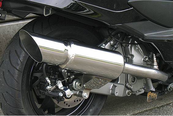 ■受注生産商品となっており、商品手配後 2週間程度入荷にお時間を頂きます。■オールステンレス製で、エキパイからサイレンサーまでバフ仕上げを施しています。ビッグスクーターにマッチするようエキパイ径45mm、サイレンサー径115mmの仕様で、装着時の全体的なバランスがとれた仕上がりとなっています。低中速を落とすことなく高回転でスムーズに回り扱いやすい設定になっています。振動防止のためサイレンサーとエキパイが2分割となる安心設計になっています。サイレンサーは、3点止めになっていますのでしっかりと固定でき、耐久性にも優れています。無加工ボルトオンにて装着できますので、必要な工具があれば簡単に取り付けできます。(取り付けに必要なボルト類は全て付属しております。)サイレンサーはストレート構造ではなくフロント部にパンチングを施した作りになっていますので、音量は静かめに抑えられており近所迷惑になる事無く安心して走行できます。バッフル装着時 約92db(法定規制値内音量)バッフル非装着時 約96dbになります。