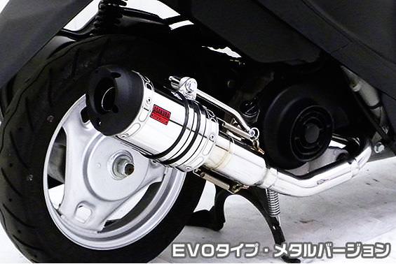 ■受注生産商品となっており、商品手配後 2週間程度入荷にお時間を頂きます。■※O2センサーが装着されているモデルには対応しておりませんので、ご注文の際にはお間違えの無いようご注意下さい。※平成22年4月1日より施行された認証制度に適合する認証マフラーではありません。ご理解の程よろしくお願い致します。※画像中の取付車種は参考となります。お届け商品は適合商品となります。新時代から導き出された究極のイノベーションデザインで非常にインパクトあるマフラーです。メタルバージョンはステンレスをバフ磨きでピカピカに仕上げています。消音用のバッフルが2個装備されている【ダブルバッフル仕様】となっており、バッフル無し、バッフル1個装着、バッフル2個装着と3種類の排気音を選べるサウンドセレクトスタイルになっています。バッフルはステンレスタイプ(EVOタイプはプレートタイプ)とアルミタイプの2種類のバッフルが装備されています。音量はバッフル2個装着時の排気音量が 約82db(法定規制値内音量)バッフル1個装着時の排気音量が 約84dbバッフル非装着時の排気音量が 約87db です。 音質も耳障りな音でなく重低音のサウンドになっていますので、ノーマルマフラーではちょっと物足りない方にオススメです。サイレンサーはストレート構造ではなく隔壁構造になっていますので、音量は静かめに抑えられており近所迷惑になる事無く安心して走行できます。低中速を落とすことなく高回転でスムーズに回り扱いやすい設定になっています。振動防止のためサイレンサーとエキパイが2分割となる安心設計になっています。サイレンサーは、2点止めになっていますのでしっかりと固定でき、耐久性にも優れています。無加工ボルトオンにて装着できますので、必要な工具があれば簡単に取り付けできます。(取り付けに必要なボルト類は全て付属しております。)サイレンサーバンドにはスリットタイプを採用してデザインにもこだわっています。サイレンサーの固定にはサイレンサーバンドを採用し、バフ仕上げを施したステンレス製丸棒で組んだステーを介して固定しておりますので、従来のステーの固定より車体と調和した高級感あふれるマフラーです。オールステンレス製で、エキパイからサイレンサーまでバフ仕上げを施しています。