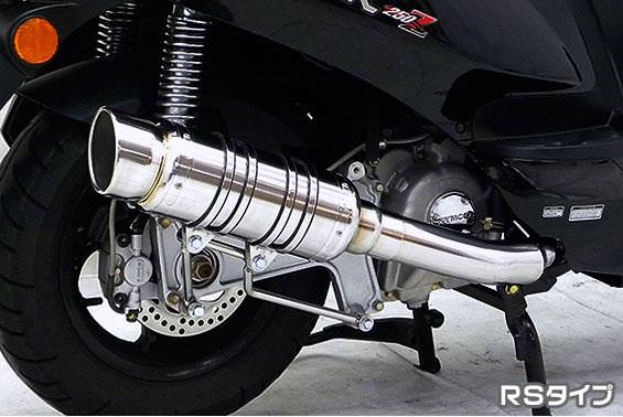 ■受注生産商品となっており、商品手配後 2週間程度入荷にお時間を頂きます。■オールステンレス製でエキパイからサイレンサーまでバフ仕上げを施しています。ビッグスクーターにマッチするよう極太のエキパイ60mm径、サイレンサー110mm径の仕様で、非常にバランスのとれた仕上がりなっています。性能面は、低中速を落とすことなく高回転でスムーズに回り扱いやすい設定になっています。サイレンサーは、ストレート構造ではなくフロント部にパンチングを施した作りになっていますので音量は、静かめに押さえられ近所迷惑になる事無く安心して走行できます。音質も耳障りな音でなくバッフル装着時は静かめの低音、バッフル非装着時は心地よい最高の重低音を実現しております。排気音量はバッフル装着時 約88db(法定規制値内音量)バッフル非装着時 約91db になります。無加工ボルトオンにて装着できますので、必要な工具があれば簡単に取り付けできます。(取り付けに必要なボルト類は全て付属しております。)振動防止のためサイレンサーとエキパイが2分割になる安心設計になっており、耐久性が抜群に高い構造を採用しています。サイレンサーの固定にはサイレンサーバンドを採用し、バフ仕上げを施したステンレス製丸棒で組んだステーを介して固定しておりますので、従来のステーの固定より車体と調和した高級感あふれるマフラーです。ローダウンにも対応しておりますので、安心してご使用下さい。