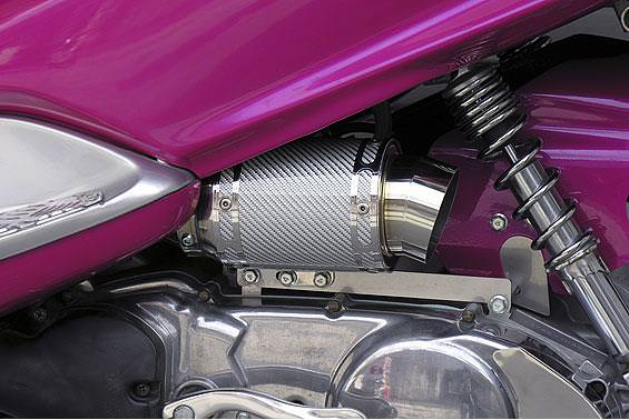 ■受注生産商品となっており、商品手配後 2週間程度入荷にお時間を頂きます。■圧倒的な高級感で魅了する独創的で革新的な、次世代の究極エアークリーナーKitです。クリーナーにはパワーフィルターが装備しており、フィルターの出し入れ(スライド位置調整)で無段階に調整できる設計ですので、キャブレターのジェット類セッティング無しで簡単に調整ができ、力強い走行が可能になります。(ボアアップ、駆動系、抜けの良いマフラーに変更などの改造をされている場合は、キャブレターのジェット類セッティングが必要となる場合があります。)本体は100mm径のステンレスボディローダウンにも対応していますが、極端なローダウン、走行条件等で場合によりボディと干渉する恐れがあります。