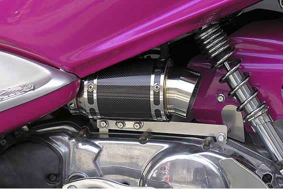 ■受注生産商品となっており、商品手配後 2週間程度入荷にお時間を頂きます。■圧倒的な高級感で魅了する独創的で革新的な、次世代の究極エアークリーナーKitです。クリーナーにはパワーフィルターが装備しており、フィルターの出し入れ(スライド位置調整)で無段階に調整できる設計ですので、キャブレターのジェット類セッティング無しで簡単に調整ができ、力強い走行が可能になります。(ボアアップ、駆動系、抜けの良いマフラーに変更などの改造をされている場合は、キャブレターのジェット類セッティングが必要となる場合があります。)本体は100mm径のステンレスボディローダウンにも対応していますが、極端なローダウン、走行条件等で場合によりボディと干渉する恐れがあります。
