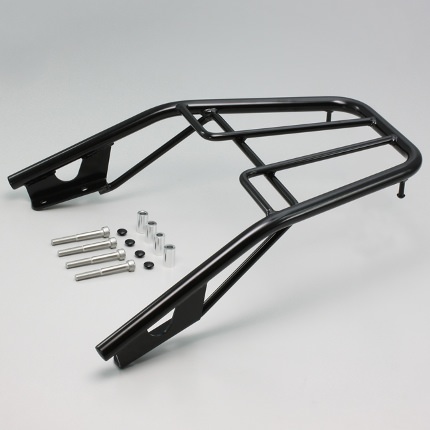 ※リアボックスなど積載物の利用確認は行っておりません。許容量にはご注意ください。コンパクトな荷台設定。メインパイプ径はΦ19.1mm。許容積載量:3.5kg荷台サイズ:前部幅330mm×後部幅200mm×長さ230mm。サイド部分はタンデムグリップとしても使用可能です。スチール製ブラック2重塗装。荷掛けフックは2箇所付きです。ボルトオン装着可能です。