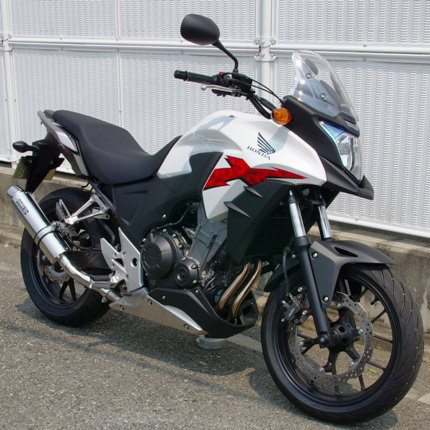 ※メーカー欠品時には受注生産となり数週間の納期を要する場合がございます。サイレンサータイプ:ステンレス製ソリッド。ご注意) 400X専用の純正オプションのセンタースタンドをご使用の場合、この商品は装着不可となります。JMCA認定・政府認証モデル。近接排気騒音:90デシベル、加速走行騒音:78デシベル。純正触媒仕様確認書付属。オイル交換、オイルフィルター交換対応。ベンチテストにより徹底的に性能をチェック、400X の特性をより活かすべく開発しました。アクセルレスポンスの改善、低中速域のトルク・パワーUP によって回転の繋がりが更にスムーズに。センターパイプ前部にΦ42.7→Φ50 テーパーパイプを採用する事により、ストレスのない吹け上がりを実現。音質はツインの独特のパルス感を更にレーシーなイメージに味付け。ワイルド感あるサウンドを堪能頂けます。スリップオンマフラー取り付けに必要なジョイントガスケットを付属しております。
