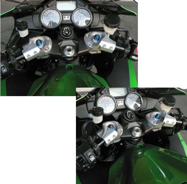 Kawasaki のフラッグシップとして発表された Ninja ZX-14R、そのライディングポジションをライダーの体格や好みに最適化する為、BEET社ではマルチハンドルKIT を開発。・ポジションはバーエンド付近での変化量でノーマル比約 25mmBack/45mmUp ・オプション設定の専用10mm スぺーサーとの併用で最大 55mm(45mm+10mm)Up も可能。・ハンドルブラケットの取付穴部分を長穴とする事でハンドルの絞り角度も調整可能。・取付に当たっては各ワイヤーやホース類の取り回しの変更が必要です。※BEET社での取付確認では取り回しの変更で対応できましたが、ホースに関しては社外品の長さに余裕のある物に交換する事をお勧めいたします。