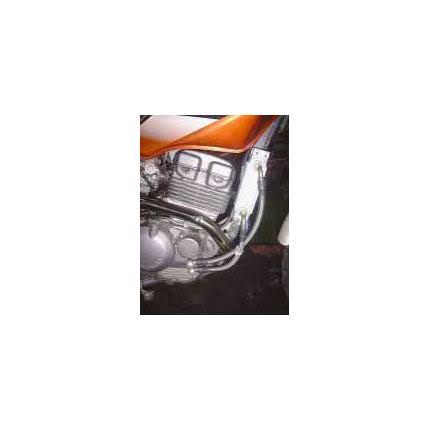 ・空冷エンジン独特の、高速走行時の熱だれを軽減。特にボアアップ等で熱量が増大したエンジンを効率よく冷却します。 ・コアは4.5インチの7段を使用し油圧の低減を防止、ホースはステンレスメッシュホースを使用の上、各フィッティングは専用品のカシメ仕様とする事でより高い信頼性を確保。 ・専用ステー及びフィッティングの付属により、ボルトオン装着が可能。