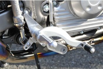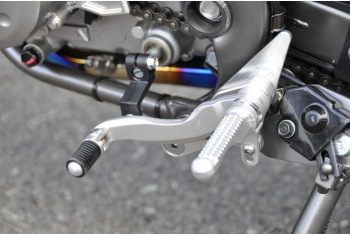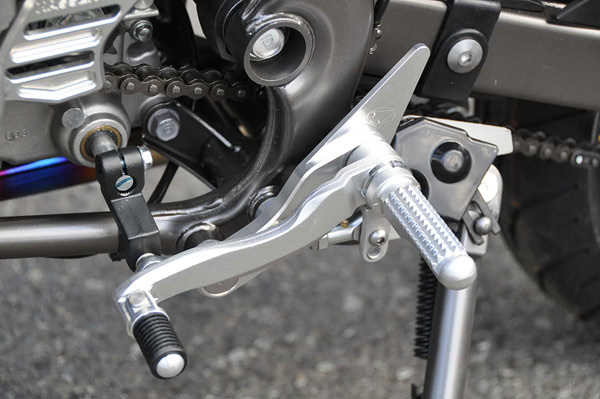 ・スポーツ走行に最適化したステップ位置は100mmBack・20mmUpの1ポジション。・ぺダル・ステップバー及びつま先部分に熱間鍛造ジュラルミン素材を使用し、素材レベルで万が一のアクシデントによるダメージを軽減。・プレートはジュラルミン削り出しシルバーアルマイト処理のハイクオリティ。Back:100mm/UP:20mm
