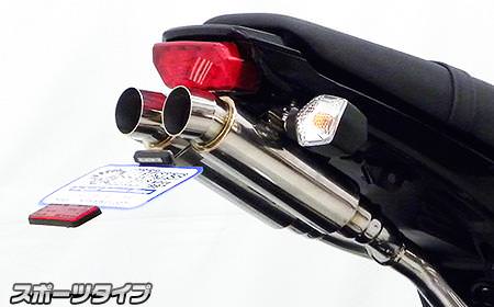 専用のナンバー移設Kit(LEDナンバー灯、リフレクター(反射板)付属)がセットされていますので、ノーマルリアフェンダーと付け替えてマフラーを取り付けて下さい。