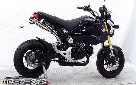 ■受注生産商品となっており、商品手配後 2週間程度入荷にお時間を頂きます。■※マフラー中間の分割部以降のサイレンサー部分だけ取り替えるスリップオンタイプの商品です。※エキパイから全て換えるフルエキゾーストタイプのマフラーではありませんのでご注意ください。※平成22年4月1日より施行された認証制度に適合する認証マフラーではありません。ご理解の程よろしくお願い致します。ファニーなグロム(MSX125)のスタイルにベストマッチする、2本出し仕様のマフラーです。短めで細めのサイレンサーをダブルで配した、他社には無い時代を先行く2本出しマフラーが完成しました。バッフル(消音用パーツ)は、サイレンサー1本に対し1つずつ装備されていますので、簡単な作業で3種類の音量を選択できます。音質はとてもマイルドで重低音です。取り付けは加工の必要が無く、純正マフラーと付け替えるだけのボルトオンで簡単に装着できます。純正エキパイ(フロントパイプ)とのジョイント部用に、純正ガスケットが付属しています。専用のナンバー移設Kit(LEDナンバー灯、リフレクター(反射板)付属)がセットされていますので、ノーマルリアフェンダーと付け替えてマフラーを取り付けて下さい。※ノーマルリアフェンダーのままではマフラーの取付が出来ませんのでご注意下さい。材質は、耐久性、耐腐食性の高いオールステンレス製です。音量:バッフル両方装着時排気音量 約 87db/バッフル片側装着時装着時排気音量 約 89db/バッフル非装着時排気音量 約 91db