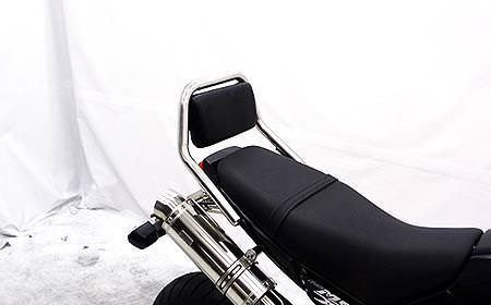 ■受注生産商品となっており、商品手配後 2週間程度入荷にお時間を頂きます。■安心して安全にタンデム走行ができる機能面を重視した商品です。急発進時、横揺れ時、ブレーキング時の転落を防止し、子供から大人までしっかりとタンデムを快適にサポートしてくれます。タンデム走行テストを繰り返し開発した、車種専用特別設計です。バフ掛けを施していますので、高級感タップリに仕上がっています。バーの直径は25mmと極太で、パッセンジャーが握りやすく力を入れやすいので、安全性も高くなっております。他社メーカーにはないバックレストを使用していますのでパッセンジャーを快適かつ安全に走行できます。表面素材にはノーマルシートと似たシート生地を使用していますので、取って付けた感じは無くとても自然にマッチします。オリジナルバックレストは型から興して製作していますので、価格を抑えることに成功し見た目も良く耐久性に優れたしっかりとした作りになっています。材質は、耐久性、耐腐食性の高いオールステンレス製です。