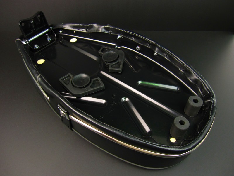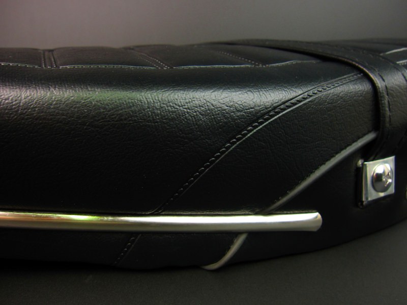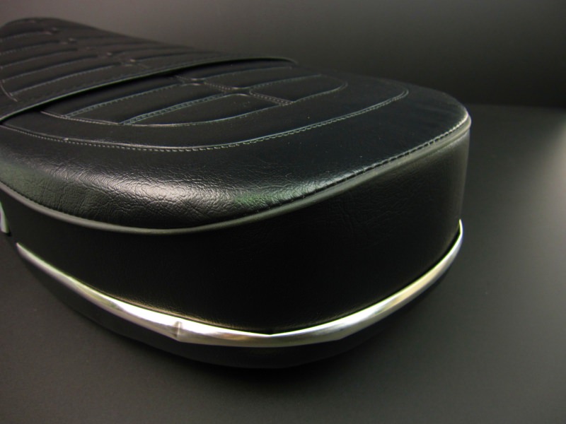 ※年式により取り付け加工が必要です。タンデムベルト、モールなど当時のシートを再現しました。純正シートよりもあんこ抜きを施しています。輸入品シートですが、造りはしっかりとしています。サイズL550×H90(mm)シート後方のコーナー部分のモール曲げが歪な部分があります。メーカー・生産国: 中国製