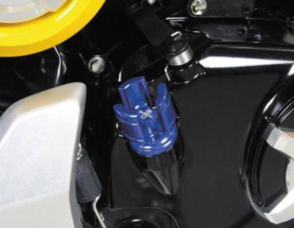 アルミを大胆に削り込み、存在感と指先での回しやすさを両立したオイルレベルゲージです。キャップ部はアルミ材を削り出し、表面にアルマイトを施しています。中央部にはSP武川“ピストンマーク”のレーザーマーキングを施し、エンジン回りのワンポイントカスタムに存在感をプラスします。ゲージ部はオイルレベルの目安となるスリット入りでノーマル同様の整備性を保持しています。