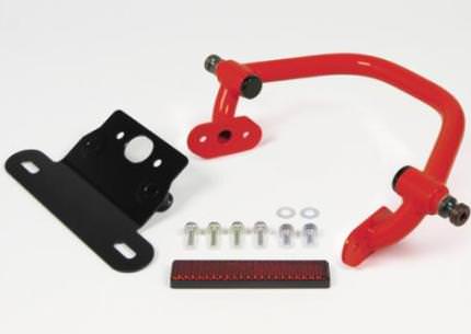 ※取付けにはリアフェンダーの一部加工が必要です。テールライト周りをガードすることが出来ます。装着することで、トレッキングスタイルのイメージを高めます。ガードはウインカーステーと一体構造を採用し、SP武川製カスタムウインカーの装着が可能になります。又、ライセンスプレート、貼付けタイプのリフレクターが付属している為、保安基準をクリアしながら車両カスタムをお楽しみ頂けます。スチール製ガードの表面にはカラー塗装が施されています。カラーはHONDA純正カラーに合わせたファイティングレッドです。スチール製ライセンスプレートの表面にはつや消しブラック塗装が施されています。■ 注意事項ノーマルウインカーは取付け出来ません。別途SP武川製指定ウインカーキットの購入が必要になります。指定ウインカーキットと品番丸型Sウインカーキット:05-08-0311/05-08-0312/05-08-0313丸型Mウインカーキット05-08-0306/05-08-0307/05-08-0308