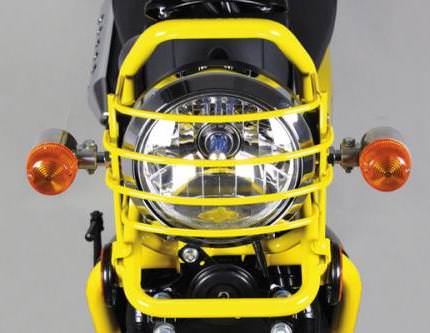 ※適合フレームNoを確認の上お求めください。ヘッドライトの光を遮ること無く使用出来るヘッドライトガードです。装着することで、トレッキングスタイルのイメージを高め、ヘッドライト周りを引き締めます。ノーマルヘッドライトステーにボルトオンの為、簡単に取付け出来ます。スチール製ヘッドライトガードの表面にはカラー塗装が施されています。カラーはHONDA純正カラーに合わせたパールコーンイエローです。