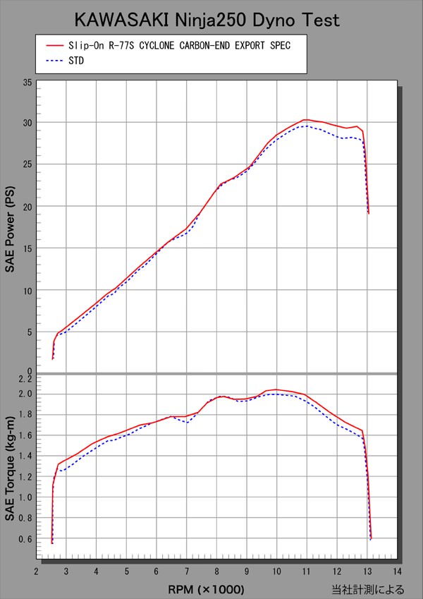 カワサキ “Ninja” のスピリッツを受け継いだ末弟 新型「Ninja250」に早くも「スリップオンマフラー R-77S サイクロン カーボンエンド」が登場。2011年の登場以来ヨシムラサイクロンの顔となっているR-77Jサイクロンをダウンサイジングした「R-77S」サイクロンは、変形四角の断面でオリジナリティーを持ち、ドライカーボンのエンドキャップにてスポーティーかつ迫力のあるデザインに仕上がっております。< br>STDマフラーと比べ約53%の軽量化(STD:4.3Kg、R-77S チタンカバー:2.0Kg)に成功。性能面ではストリートで多用する開け始めのトルクが増し、9500rpmの付近より更なるパワーが得られます。R-77Sサイクロンの優れた静音性能によりアイドリング付近はマイルドで、高回転時には迫力のあるサウンドとなります。サウンドからスタイルまで迫力のあるR-77Sサイクロンであなたのマシンがワンクラス上へとクラスアップします。後に、オプションの「エキゾーストパイプ」を組み合わせることで、スリップオンからフルエキゾーストへのバージョンアップも可能です。●政府認証マフラー●製品2年保証●平成18・19年排出ガス規制および平成22年騒音規制適合車両型式:JBK-EX250Lエンジン型式:EX-250LE自動車排出ガス試験結果証明書(ガスレポ):無し (不要)近接排気騒音:91dB/5500rpm加速走行騒音:74dBMain Material:Stainless認定番号:1013001071