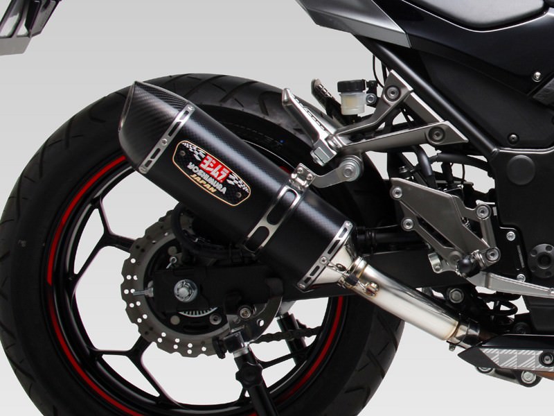 Zシリーズ末弟のスタイリッシュな「Z250」に早くも「スリップオンマフラー R-77S サイクロン カーボンエンド」が登場。2011年の登場以来ヨシムラサイクロンの顔となっているR-77Jサイクロンをダウンサイジングした「R-77S」サイクロンは、変形四角の断面でオリジナリティーを持ち、カーボンのエンドキャップにてスポーティーかつ迫力のあるデザインに仕上がっております。STDマフラーと比べ約53%の軽量化(STD:4.3Kg、R-77S チタンカバー:2.0Kg)に成功。性能面ではストリートで多用する開け始めのトルクが増し、9500rpm付近より更なるパワーが得られます。R-77Sサイクロンの優れた静音性能によりアイドリング付近はマイルドで、高回転時には迫力のあるサウンドとなります。サウンドからスタイルまで迫力のあるR-77Sサイクロンであなたのマシンがワンクラス上へとクラスアップします。本製品は「Ninja250('13)」と共通設定です。●政府認証マフラー●製品2年保証●平成18・19年排出ガス規制および平成22年騒音規制適合車両型式:JBK-ER250Cエンジン型式:EX-250LE自動車排出ガス試験結果証明書(ガスレポ):無し (不要)近接排気騒音:91dB/5500rpm加速走行騒音:74dBMain Material:Stainless認定番号:1013001071【同梱パーツ】ガズケット(パイプ接合部)。