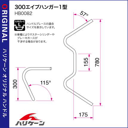 300エイプハンガー1型 ハンドル&ケーブルセット HURRICANE(ハリケーン) CB400SF VTEC/II/III (99〜07年 NC39)