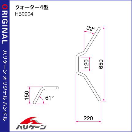 クォーター4型 ハンドル&ケーブルセット HURRICANE(ハリケーン) CB750(RC42)