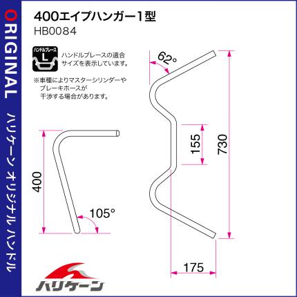 400エイプハンガー1型 ハンドル&ケーブルセット HURRICANE(ハリケーン) モンキー(MONKEY)84〜07年