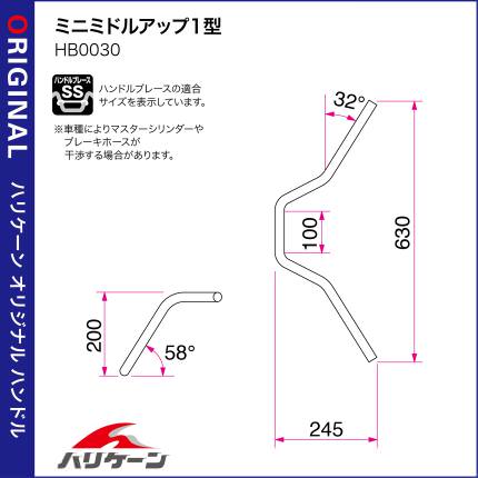 ミニミドルアップ1型 ハンドル HURRICANE(ハリケーン) モンキー(MONKEY)84〜07年:HB0030C-01
