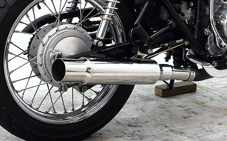 ■受注生産商品となっており、商品手配後 2週間程度入荷にお時間を頂きます。■※サイレンサー部分だけ取り替えるスリップオンタイプの商品です。フルエキゾーストタイプのマフラーではありませんのでご注意ください。※平成22年4月1日より施行された認証制度に適合する認証マフラーではありません。ご理解の程よろしくお願い致します。シンプルな形状でありながら、存在感溢れるスタイルのシャープタイプサイレンサーを採用しました。チョッパースタイル、アメリカンスタイル、カフェレーサースタイルに合うマフラーです。サイレンサーは細すぎず太すぎずの90mm径を採用しています。このマフラーの1番の売りは「音」です。音量、音質は抜群です!低くて重厚感のある重低音がドッドッドっと響く、抜群のサウンドです!決して音がうるさいとか、耳障りな音ではありませんので、安心して街乗りで使用できます。バッフル(消音用のパーツ)を標準装備しておりますので、簡単な作業で2種類の音量が選択できます。性能面では排圧コントロールによって低速から高速までスムーズな走行を実現しています。取り付けはノーマルと同じ様に無加工ボルトオンで簡単に装着できます。耐久性、耐腐食性の高いオールステンレス製。音量バッフル装着時:排気音量 約 88dbバッフル非装着時:排気音量 約 92db