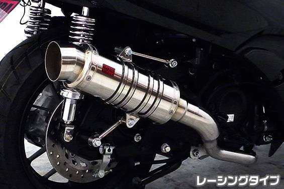 ■受注生産商品となっており、商品手配後 2週間程度入荷にお時間を頂きます。■オールステンレス製でエキパイからサイレンサーまでバフ仕上げを施しています。ビッグスクーターにマッチするよう極太のエキパイ60mm径、サイレンサー110mm径の仕様で、非常にバランスのとれた仕上がりなっています。性能面は、低中速を落とすことなく高回転でスムーズに回り扱いやすい設定になっています。サイレンサーは、ストレート構造ではなくフロント部にパンチングを施した作りになっていますので音量は、静かめに押さえられ近所迷惑になる事無く安心して走行できます。音質も耳障りな音でなくバッフル装着時は静かめの低音、バッフル非装着時は心地よい最高の重低音を実現しております。排気音量はバッフル装着時 約90db(法定規制値内音量)、バッフル非装着時 約93db になります。O2センサー取り付け口対応マフラーですのでノーマルと同じ様にO2センサー固定できます。無加工ボルトオンにて装着できますので、必要な工具があれば簡単に取り付けできます。(取り付けに必要なボルト類は全て付属しております。)振動防止のためサイレンサーとエキパイが2分割になる安心設計になっており、耐久性が抜群に高い構造を採用しています。サイレンサーの固定にはサイレンサーバンドを採用し、バフ仕上げを施したステンレス製丸棒で組んだステーを介して固定しておりますので、従来のステーの固定より車体と調和した高級感あふれるマフラーです。ローダウンにも対応しておりますので、安心してご使用下さい。
