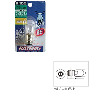 2輪車専用ヘッドランプ球ハイパーバルブシリーズ P15d-25-1 12V25/25W RAYBRIG(レイブリック)