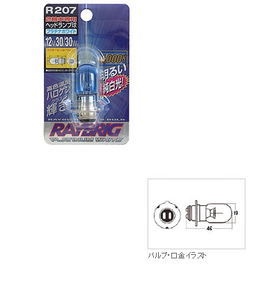 2輪車専用ヘッドランプ球ハイパーバルブ プラチナホワイト P15d-25-1 12V30/30W RAYBRIG(レイブリック)
