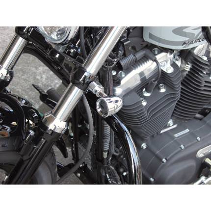 ウインカーステーー体タイプ。取付けネジ径10mm 首下ボウルト長25mm。レンズはフラットミラーガラスを採用。ボディカラー:メッキレンズカラー:メッキサイズ:44Φ×61mm基準内付属バルブG18:12V23W