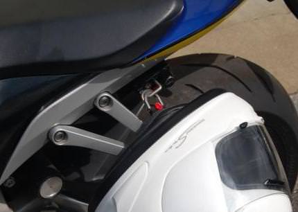 ヘルメットロック非装着車や使用しづらい車種へも簡単ボルトオン。車種専用個別設計で取付も安心取付位置:左側タンデムステップ