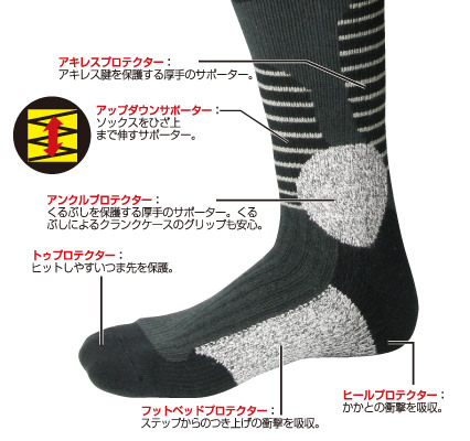 ・素材:吸汗速乾素材 ドラロン(抗菌防臭ロンフレッシュ加工)ドラロンの吸汗・速乾効果により、汗・ムレによる湿気を発散し、さらさら快適なだけでなく、抗菌防臭加工(抗菌防臭ロンフレッシュ加工)により汗によるにおいを抑えます。さらに足の部位に応じた特殊な編み方、厚み、テンションにより設計された革新的なライディングソックスです。ニーシンガード、ニーブレースの装着時のベースソックスに最適なオーバーニータイプ。