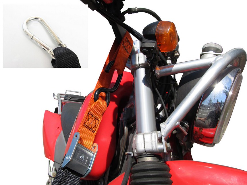 ※モニターの環境により、画像の色が実物と若干異なって見える場合がございます。カラー:オレンジサイズ:全長180cm×幅40mm耐荷重量:300kg片側のフックにはビニールコーティングが施されており車体を保護します。反対側のフックはカラビナ式になっているので万が一ベルトが緩んだ際にも外れにくい作りになっています。40mmの幅広いカムバックルを採用しており車体の大きな横揺れにも対応しています。片側フックの横には延長バンドが縫いこまれており、積載中に延長バンドを探す手間が省けます。