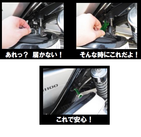 ※本製品はヘルメットロックを使用しやすくする補助的商品です。防犯効果を高めるものではありませんので、長時間のご使用はお控え下さい。※こちらの商品は画像中グリーンになります。ヘルメットロックに掛け辛い、ベルトの短いヘルメットも楽々です!カラビナで取り外しも簡単です。キジマ製ヘルメットロックは勿論、平型の純正ロックにも使用可能です。ラチェット式ストラップを使用しているショウヘイ社ヘルメット等小さなDリング対応タイプです。