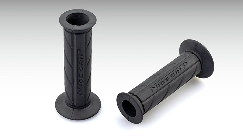手になじみやすいネオプレーンゴムを使用。フィット感と耐振動・耐久性に優れるグリップです。取付を容易するテーパー加工、ワイヤリングの為のガイドを設定。さらにハイクオリティーグリップもラインナップ。特殊ラバーの使用で劣化や変色がしにくいハイグレードタイプ。 標準サイズ用、左右SETサイズ:全長120mm、最大径31mmタイプ:オープンエンドカラー:ブラック