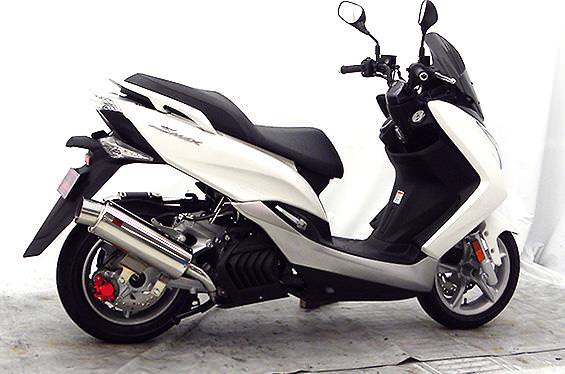 ■受注生産商品となっており、商品手配後 2週間程度入荷にお時間を頂きます。■※平成22年4月1日より施行された認証制度に適合する認証マフラーではありません。ご理解の程よろしくお願い致します。オールステンレス製で、エキパイからサイレンサーまでバフ仕上げを施しています。ビッグスクーターにマッチするようエキパイ径45mm、サイレンサー径120mmの仕様で、装着時の全体的なバランスがとれた仕上がりとなっています。低中速を落とすことなく高回転でスムーズに回り扱いやすい設定になっています。振動防止のためサイレンサーとエキパイが2分割となる安心設計になっています。サイレンサーは、2点止めになっていますのでしっかりと固定でき、耐久性にも優れています。無加工ボルトオンにて装着できますので、必要な工具があれば簡単に取り付けできます。(取り付けに必要なボルト類は全て付属しております。)サイレンサーはストレート構造ではなくフロント部にパンチングを施した作りになっていますので、音量は静かめに抑えられており近所迷惑になる事無く安心して走行できます。バッフル装着時 約85db(法定規制値内音量)バッフル非装着時 約88db